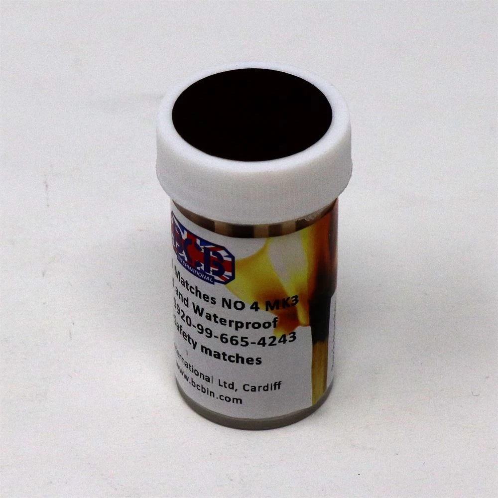 Les allumettes de survie BCB sont dotées de longues têtes qui continueront à brûler même par vents forts ou sous la pluie. 25 allumettes tout temps livrées avec un contenant étanche avec bouchon à vis. Le grattoir est situé sous la boîte.