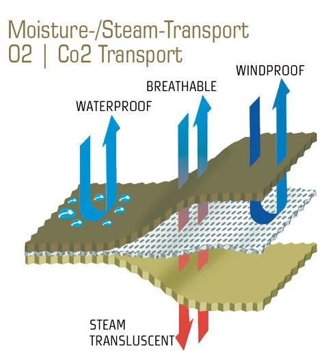 | Tissu extérieur | Gore Tex: Starlite Air – Colonne d'eau> 10.000 mm & Tissu polyamide enduit PU colonne d'eau> 6000 mm |