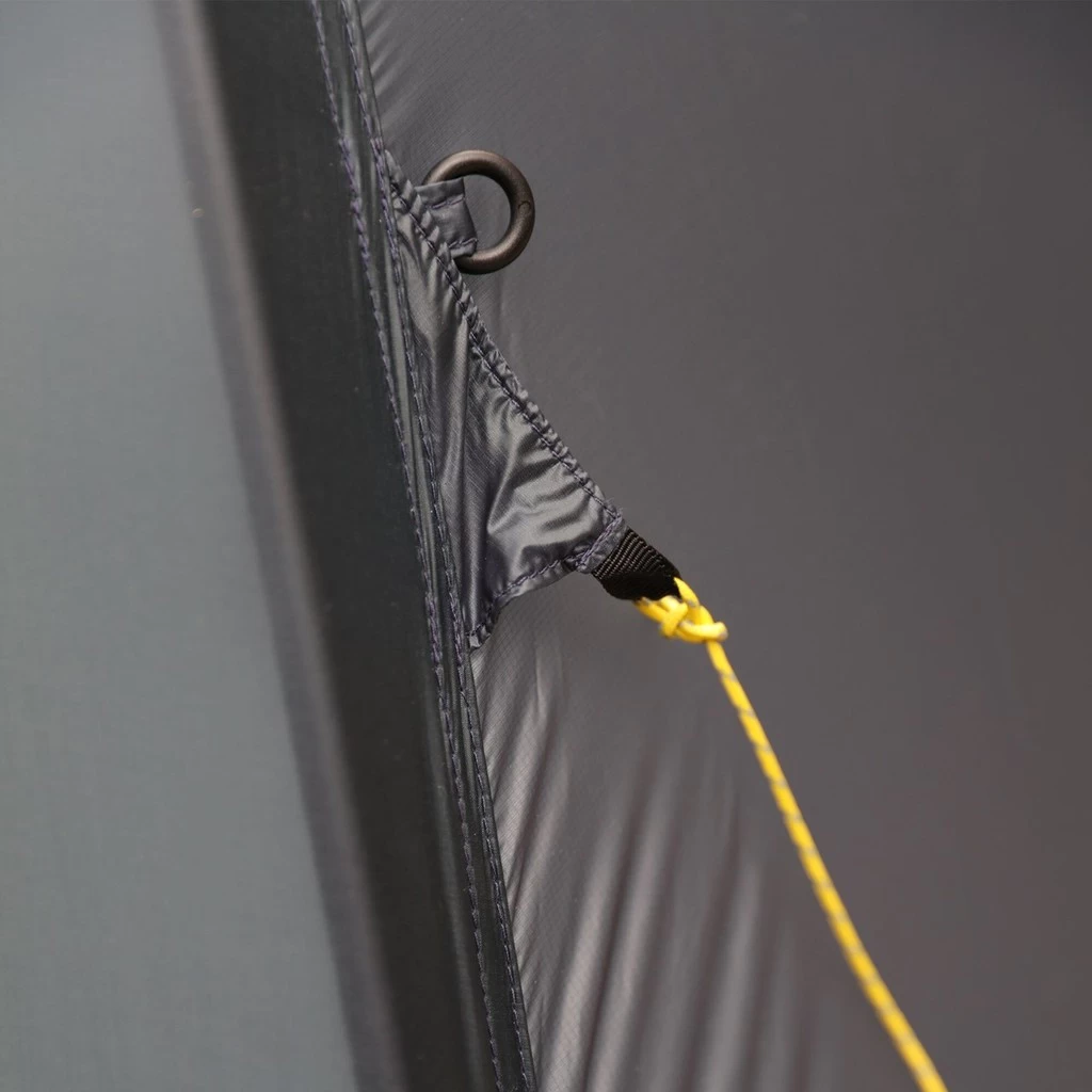 Des aérations sur les flancs et une partie de la porte d’entrée en moustiquaire facilite la ventilation et diminuent la condensation. L’air passe mais pas les moustiques ! Même si la tente est légère, elle reste stable dans des conditions venteuses. Sa forme permet une bonne résistance au vent et réduit les bruits de vibration du tissu.