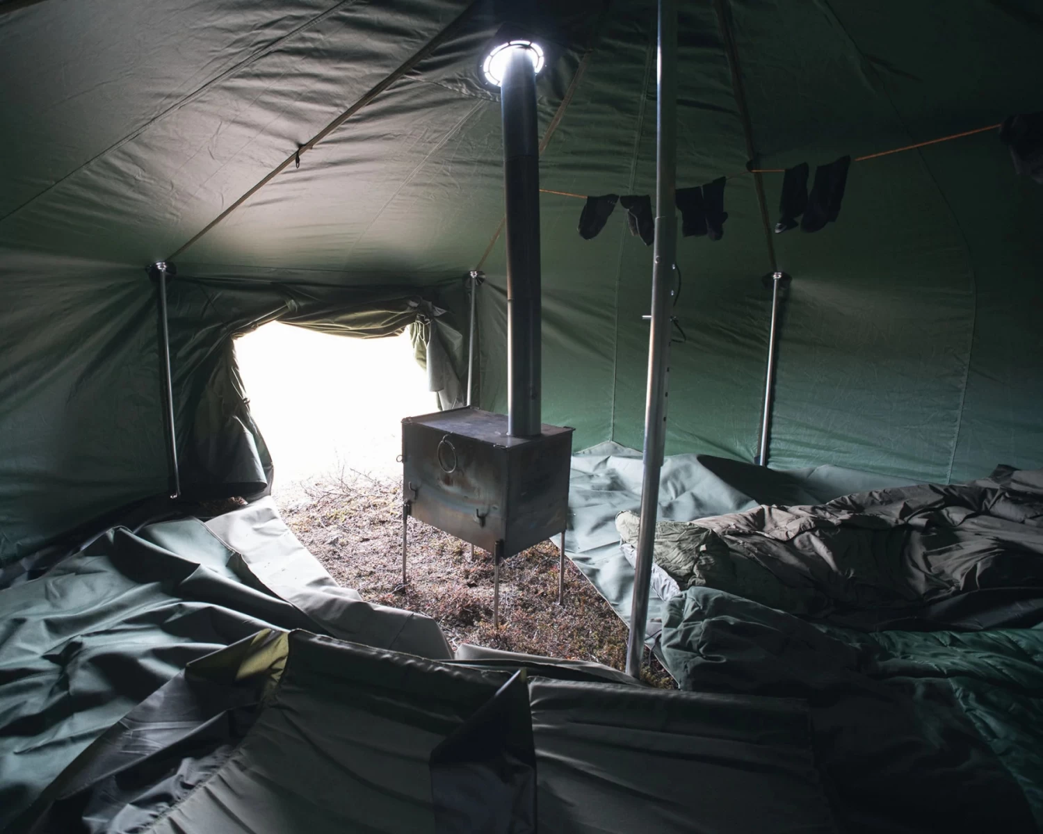 Savotta a développé la FDF 10 Tent pour l’armée finlandaise. Cette tente pour 10 personnes a été conçue pour une utilisation intensive, pour les climats nordiques et dans un usage 4 saisons. Elle est simple, facile à installer et robuste.