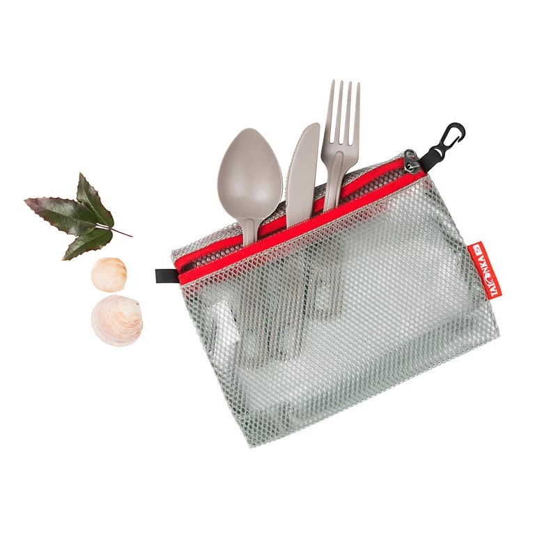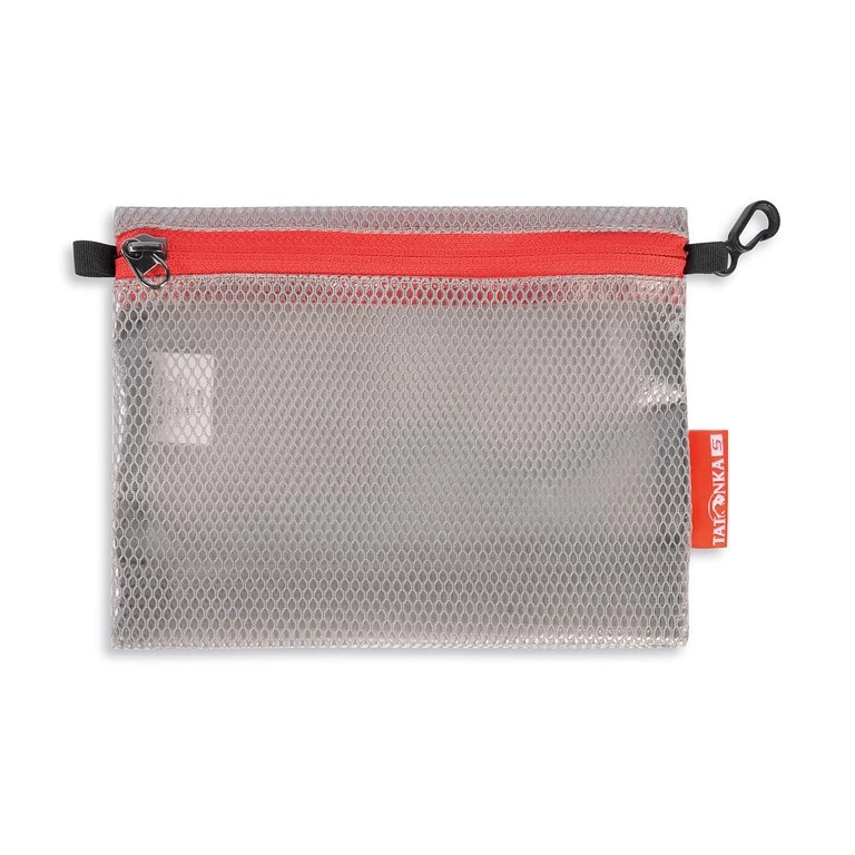 La Dodger de Tatonka est une trousse transparente en polyester mesh (aspect filet) avec une feuille de polyuréthane à l’intérieur pour la rendre étanche.