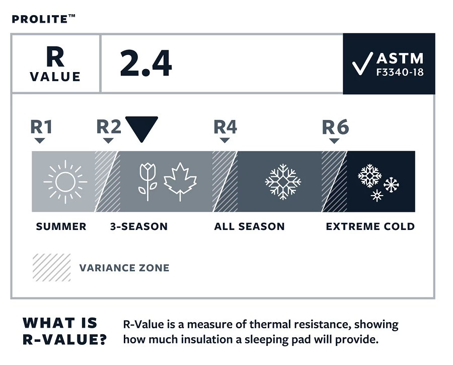 Thermarest Prolite : le matelas auto-gonflant léger de Thermarest. Il est doté d’une valve WingLock et livré avec un sac de rangement.
